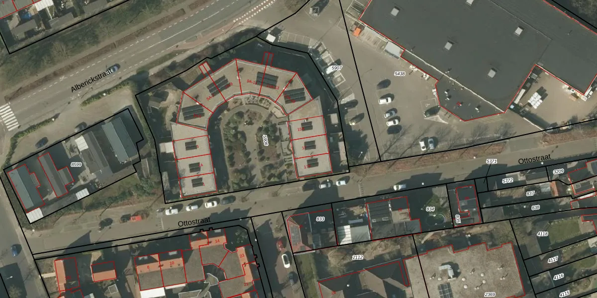 Ottostraat 17 is gelegen op kadastraal perceel VLO00M5906. Deze kadastrale aanduiding is uniek en wordt gebruikt door het Kadaster om eigendomsrechten en andere zakelijke rechten vast te leggen. Het perceel maakt onderdeel uit van de kadastrale gemeente Venlo.