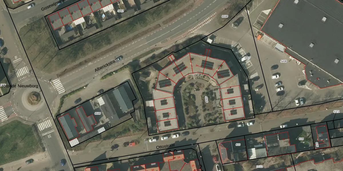 Het perceel waarop Ottostraat 5 staat heeft een oppervlakte van 2749 m². Dit is een zeer groot perceel. De perceeloppervlakte wordt geregistreerd door het Kadaster. Gedetailleerde informatie over de maten van dit perceel kunt u vinden in het rapport Kadastrale kaart met maatvoering van Ottostraat 5.