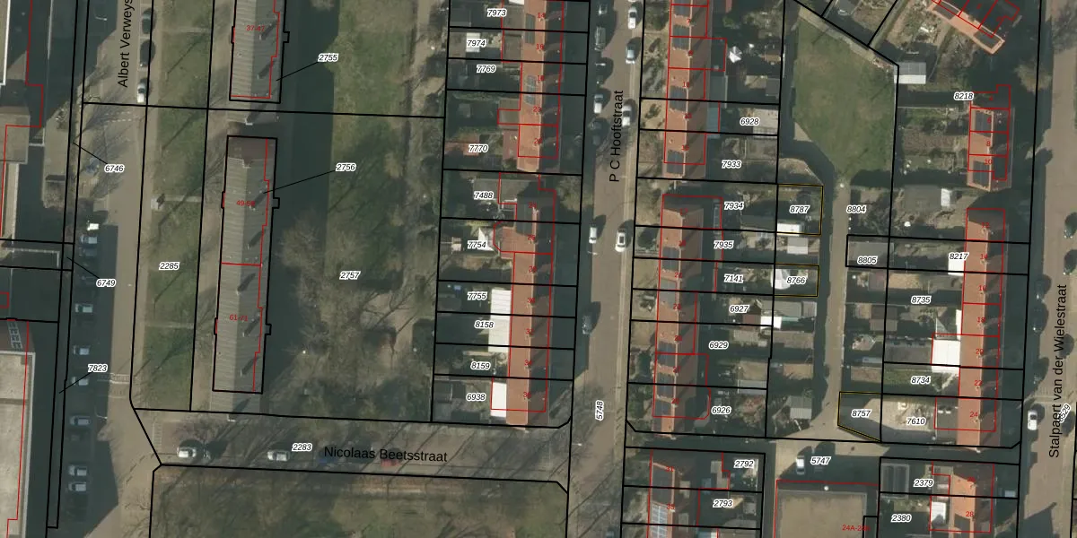 P C Hooftstraat 28 is gelegen op kadastraal perceel VLO00M7754. Deze kadastrale aanduiding is uniek en wordt gebruikt door het Kadaster om eigendomsrechten en andere zakelijke rechten vast te leggen. Het perceel maakt onderdeel uit van de kadastrale gemeente Venlo.
