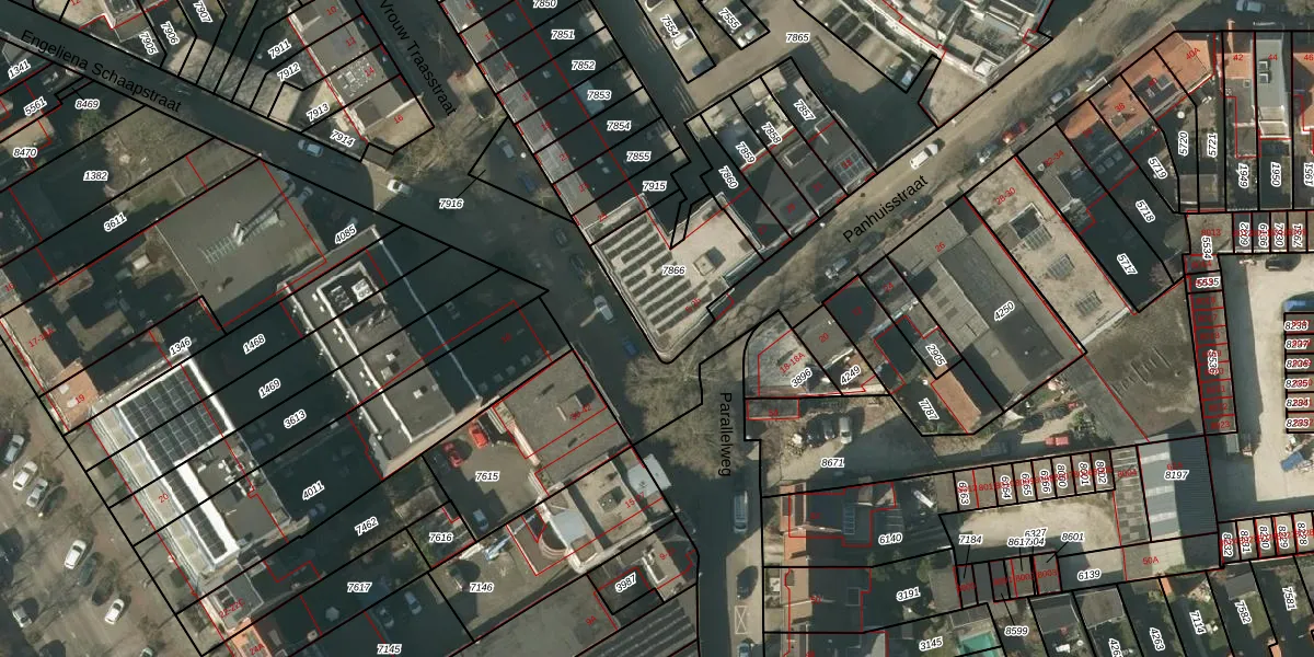 Panhuisstraat 25 is gelegen op kadastraal perceel VLO00D7866. Deze kadastrale aanduiding is uniek en wordt gebruikt door het Kadaster om eigendomsrechten en andere zakelijke rechten vast te leggen. Het perceel maakt onderdeel uit van de kadastrale gemeente Venlo.