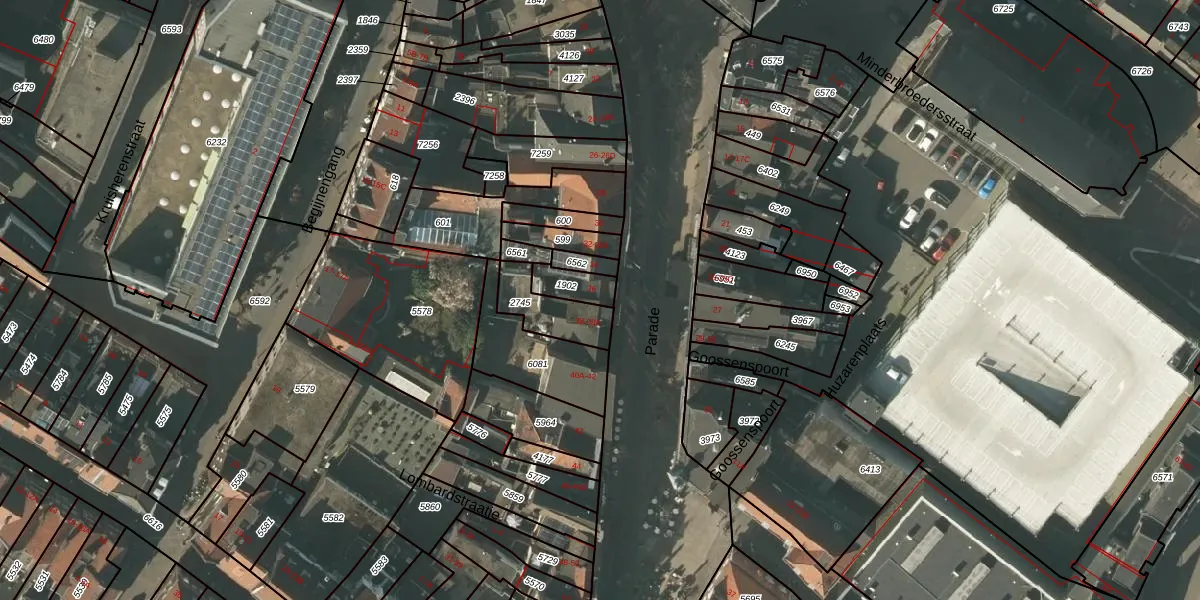 Parade 36 is gelegen op kadastraal perceel VLO00I1902. Deze kadastrale aanduiding is uniek en wordt gebruikt door het Kadaster om eigendomsrechten en andere zakelijke rechten vast te leggen. Het perceel maakt onderdeel uit van de kadastrale gemeente Venlo.