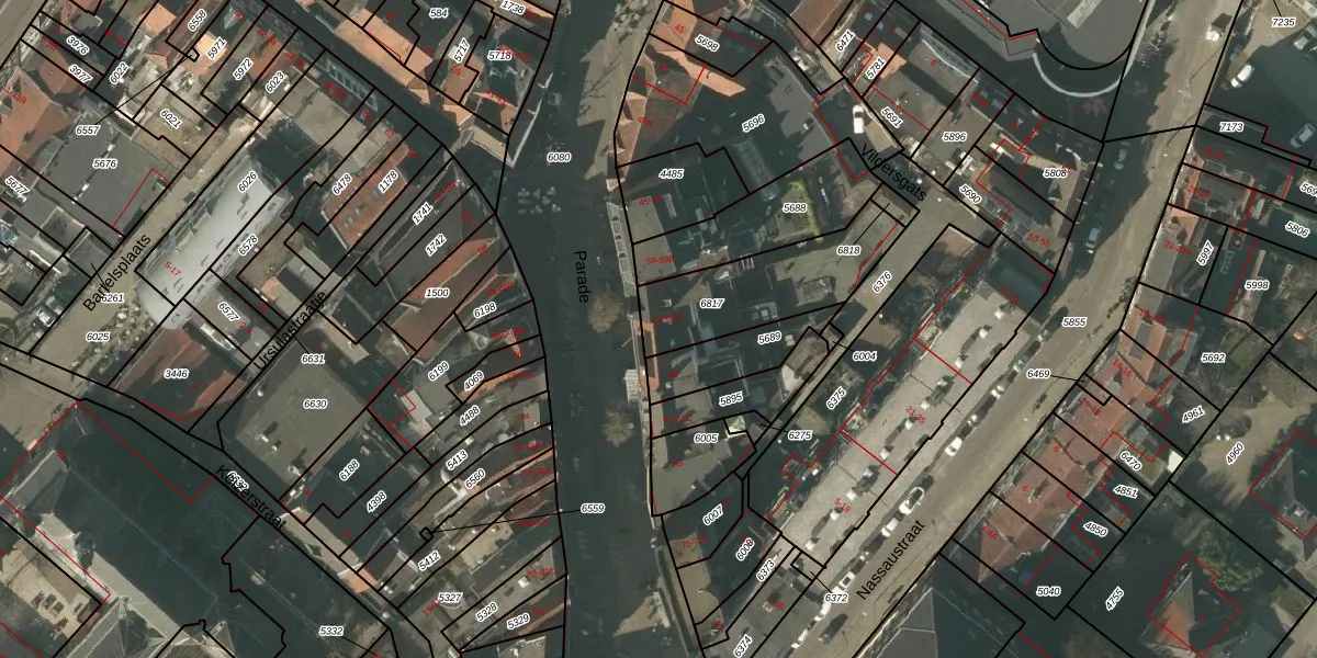 Het perceel waarop Parade 63 staat heeft een oppervlakte van 414 m². Dit is een groot perceel. De perceeloppervlakte wordt geregistreerd door het Kadaster. Gedetailleerde informatie over de maten van dit perceel kunt u vinden in het rapport Kadastrale kaart met maatvoering van Parade 63.