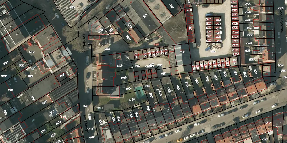 Parallelweg 8001 is gelegen op kadastraal perceel VLO00D8599. Deze kadastrale aanduiding is uniek en wordt gebruikt door het Kadaster om eigendomsrechten en andere zakelijke rechten vast te leggen. Het perceel maakt onderdeel uit van de kadastrale gemeente Venlo.