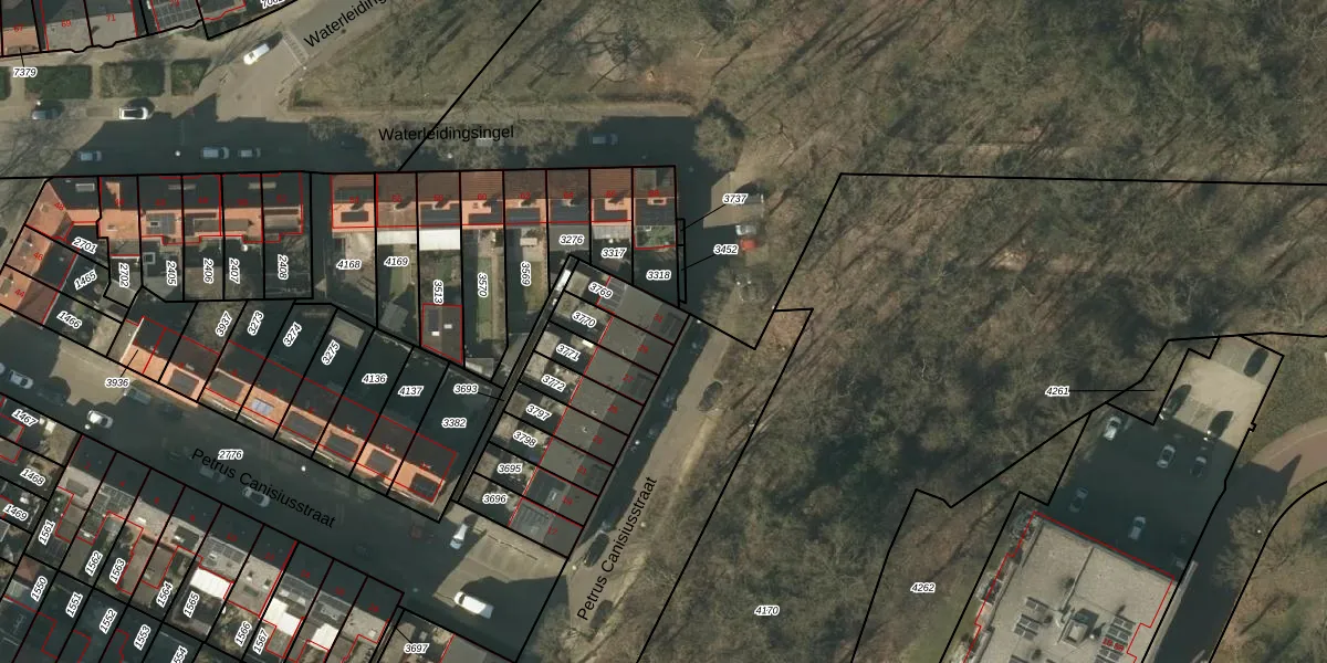 Gebruik de zoekbalk of klik op een perceel voor informatie over de adressen binnen dit perceel.