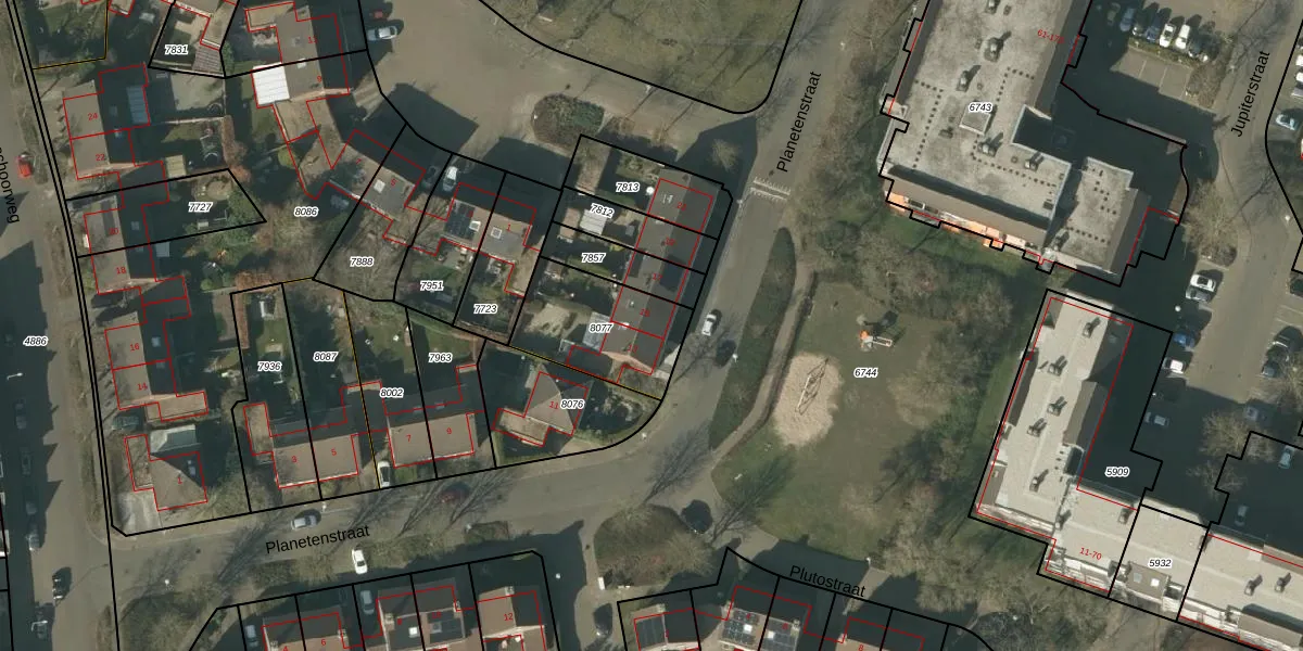 Planetenstraat 15 is gelegen op kadastraal perceel VLO00A8077. Deze kadastrale aanduiding is uniek en wordt gebruikt door het Kadaster om eigendomsrechten en andere zakelijke rechten vast te leggen. Het perceel maakt onderdeel uit van de kadastrale gemeente Venlo.