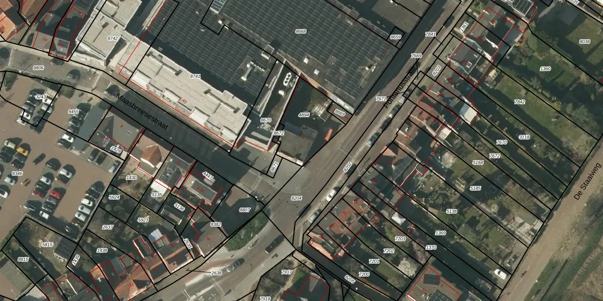 Pontanusstraat 36 is gelegen op kadastraal perceel VLO00M4894. Deze kadastrale aanduiding is uniek en wordt gebruikt door het Kadaster om eigendomsrechten en andere zakelijke rechten vast te leggen. Het perceel maakt onderdeel uit van de kadastrale gemeente Venlo.