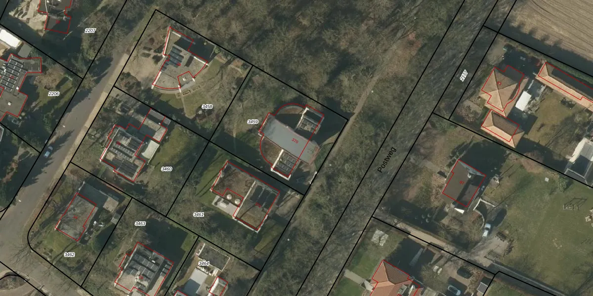 Postweg 370 is gelegen op kadastraal perceel VLO00F3459. Deze kadastrale aanduiding is uniek en wordt gebruikt door het Kadaster om eigendomsrechten en andere zakelijke rechten vast te leggen. Het perceel maakt onderdeel uit van de kadastrale gemeente Venlo.