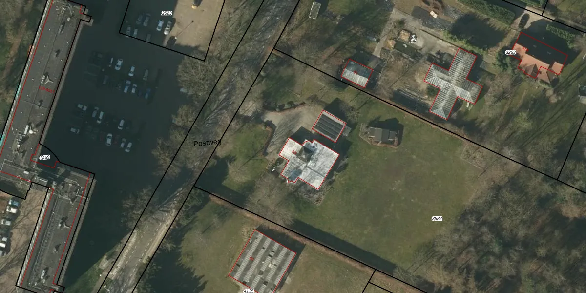 Het perceel waarop Postweg 63 staat heeft een oppervlakte van 7500 m². Dit is een zeer groot perceel. De perceeloppervlakte wordt geregistreerd door het Kadaster. Gedetailleerde informatie over de maten van dit perceel kunt u vinden in het rapport Kadastrale kaart met maatvoering van Postweg 63.