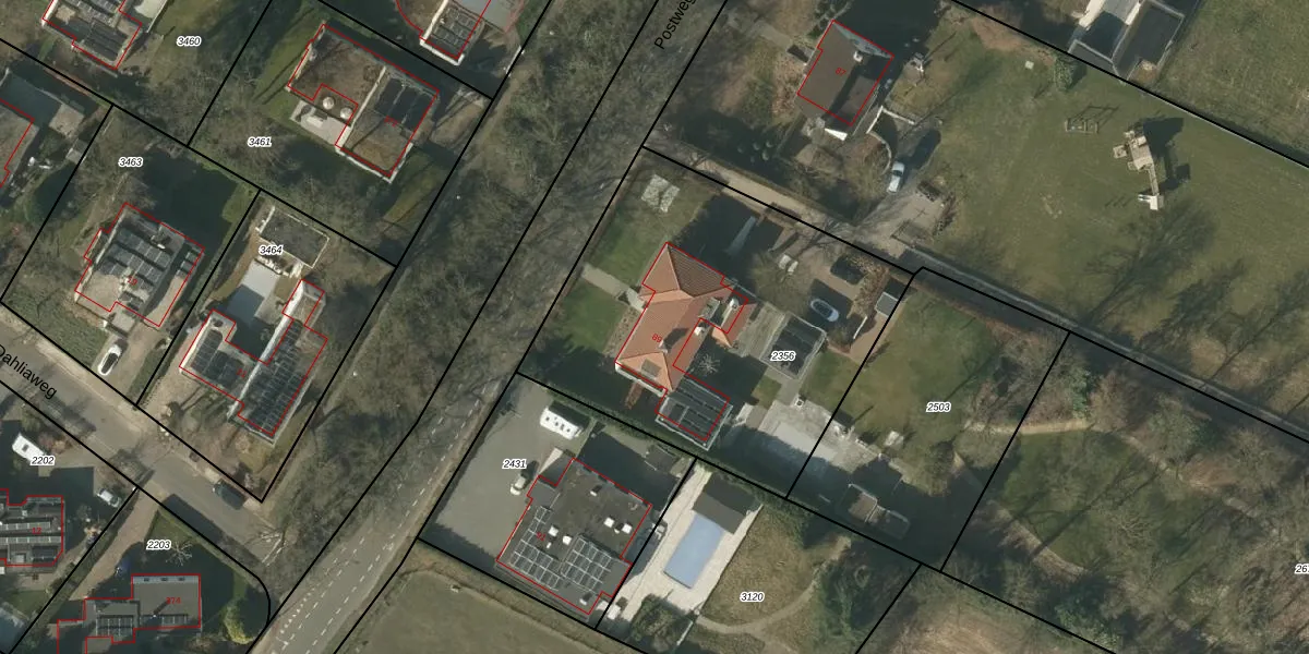 Gebruik de zoekbalk of klik op een perceel voor informatie over de adressen binnen dit perceel.