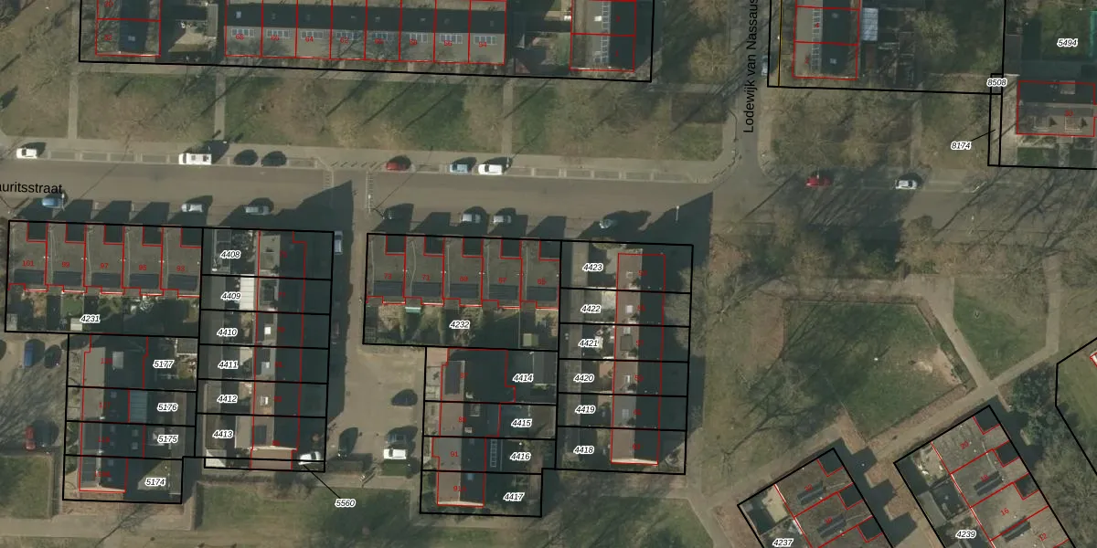 Het perceel waarop Prins Mauritsstraat 65 staat heeft een oppervlakte van 706 m². Dit is een groot perceel. De perceeloppervlakte wordt geregistreerd door het Kadaster. Gedetailleerde informatie over de maten van dit perceel kunt u vinden in het rapport Kadastrale kaart met maatvoering van Prins Mauritsstraat 65.