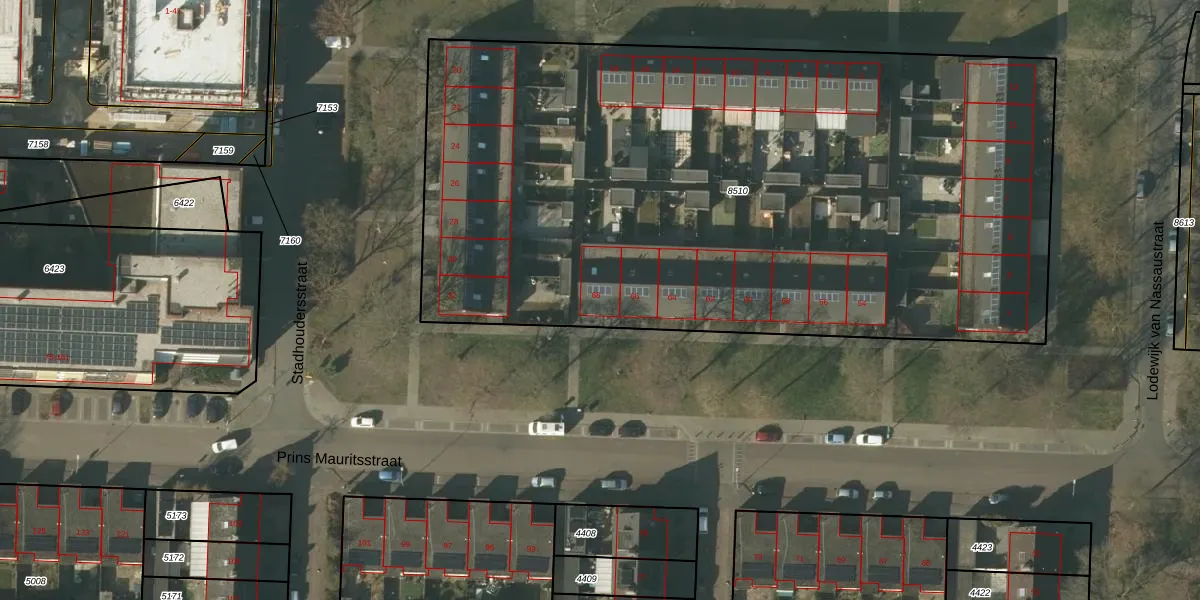 Het perceel waarop Prins Mauritsstraat 68 staat heeft een oppervlakte van 4940 m². Dit is een zeer groot perceel. De perceeloppervlakte wordt geregistreerd door het Kadaster. Gedetailleerde informatie over de maten van dit perceel kunt u vinden in het rapport Kadastrale kaart met maatvoering van Prins Mauritsstraat 68.
