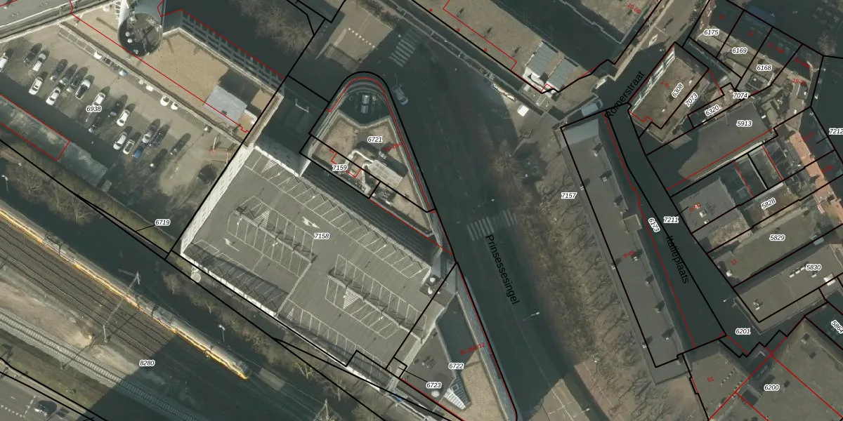 Het perceel waarop Prinsessesingel 26 staat heeft een oppervlakte van 2335 m². Dit is een zeer groot perceel. De perceeloppervlakte wordt geregistreerd door het Kadaster. Gedetailleerde informatie over de maten van dit perceel kunt u vinden in het rapport Kadastrale kaart met maatvoering van Prinsessesingel 26.