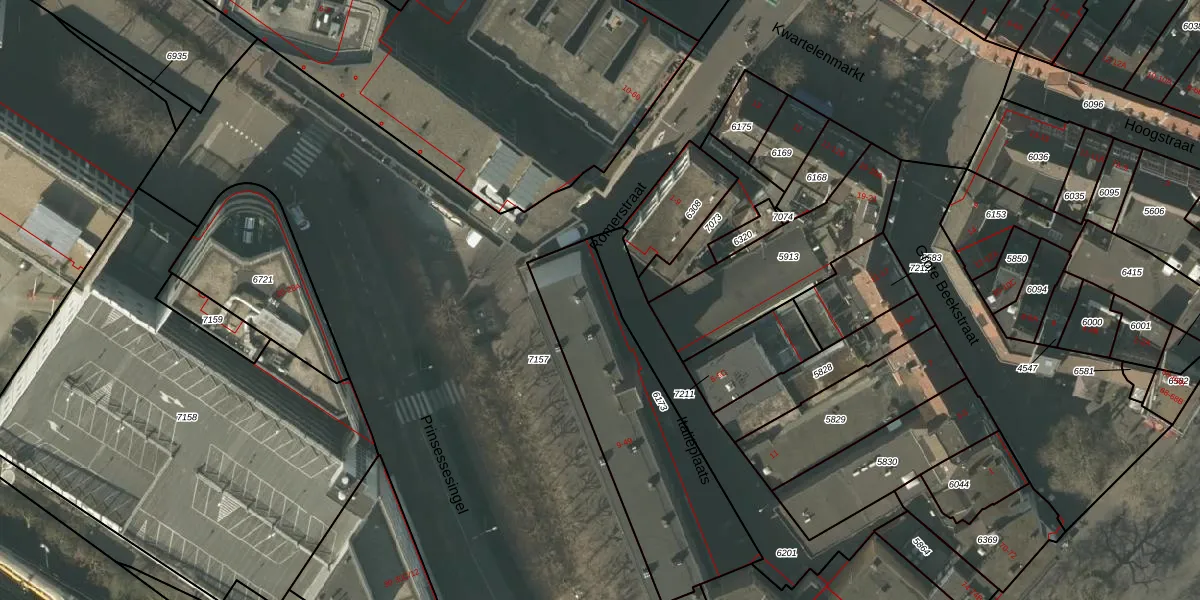 Het perceel waarop Prinsessesingel 37 staat heeft een oppervlakte van 859 m². Dit is een groot perceel. De perceeloppervlakte wordt geregistreerd door het Kadaster. Gedetailleerde informatie over de maten van dit perceel kunt u vinden in het rapport Kadastrale kaart met maatvoering van Prinsessesingel 37.