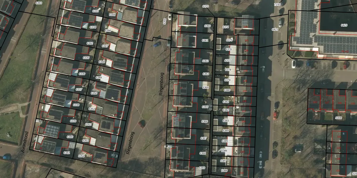 Regenboog 9 is gelegen op kadastraal perceel VLO00L6364. Deze kadastrale aanduiding is uniek en wordt gebruikt door het Kadaster om eigendomsrechten en andere zakelijke rechten vast te leggen. Het perceel maakt onderdeel uit van de kadastrale gemeente Venlo.