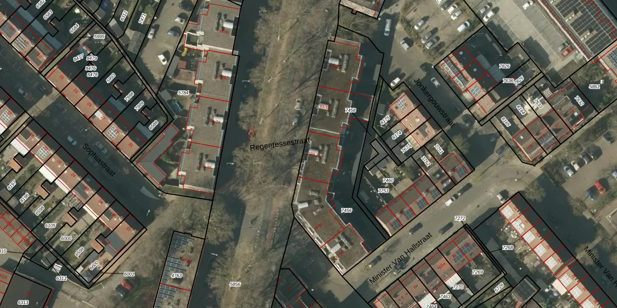 Regentessestraat 103 is gelegen op kadastraal perceel VLO00H7456. Deze kadastrale aanduiding is uniek en wordt gebruikt door het Kadaster om eigendomsrechten en andere zakelijke rechten vast te leggen. Het perceel maakt onderdeel uit van de kadastrale gemeente Venlo.