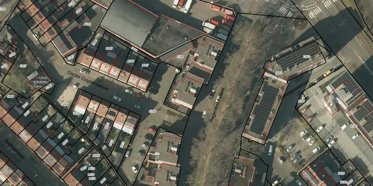 Het perceel waarop Regentessestraat 28 staat heeft een oppervlakte van 807 m². Dit is een groot perceel. De perceeloppervlakte wordt geregistreerd door het Kadaster. Gedetailleerde informatie over de maten van dit perceel kunt u vinden in het rapport Kadastrale kaart met maatvoering van Regentessestraat 28.