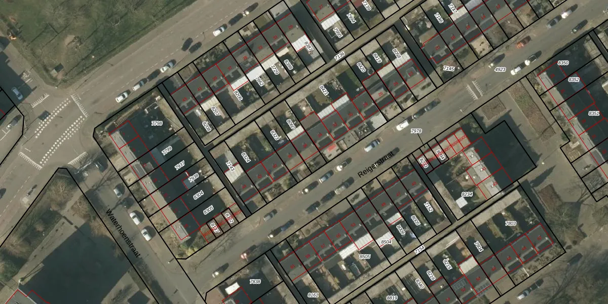 Gebruik de zoekbalk of klik op een perceel voor informatie over de adressen binnen dit perceel.