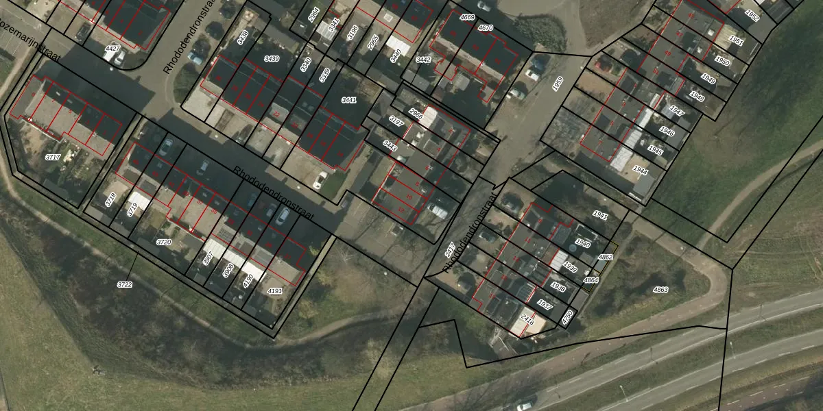 Rhododendronstraat 10 is gelegen op kadastraal perceel VLO00N3441. Deze kadastrale aanduiding is uniek en wordt gebruikt door het Kadaster om eigendomsrechten en andere zakelijke rechten vast te leggen. Het perceel maakt onderdeel uit van de kadastrale gemeente Venlo.