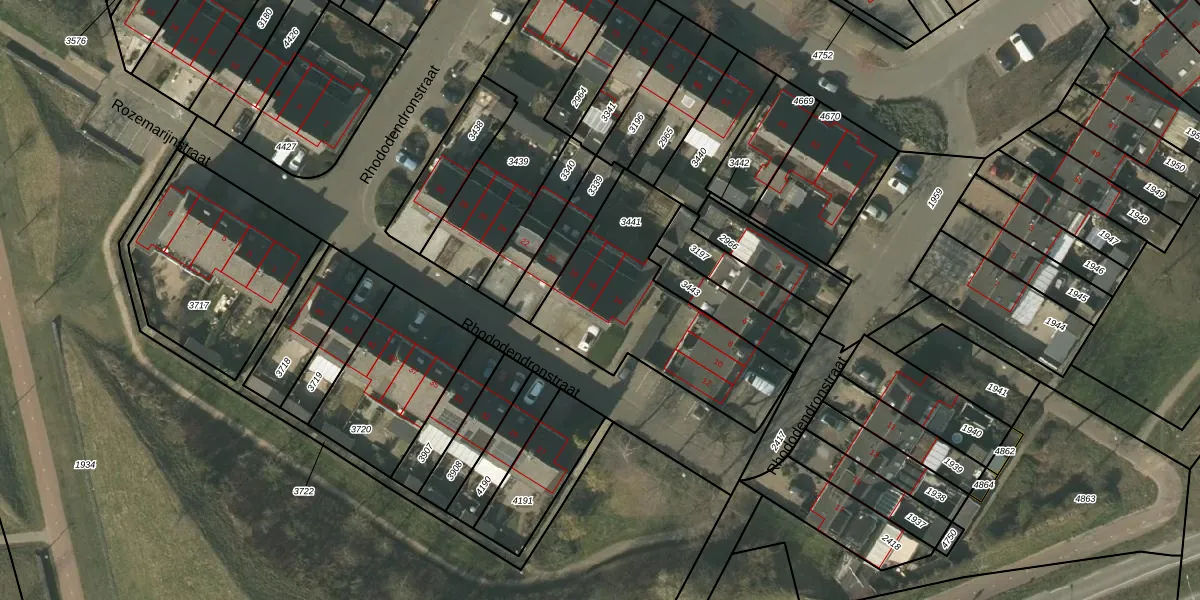 Rhododendronstraat 14 is gelegen op kadastraal perceel VLO00N3441. Deze kadastrale aanduiding is uniek en wordt gebruikt door het Kadaster om eigendomsrechten en andere zakelijke rechten vast te leggen. Het perceel maakt onderdeel uit van de kadastrale gemeente Venlo.