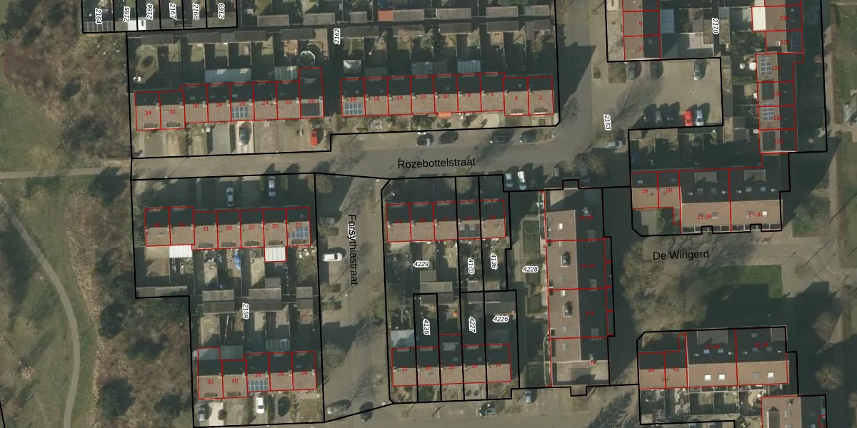 Rozebottelstraat 19 is gelegen op kadastraal perceel VLO00N4229. Deze kadastrale aanduiding is uniek en wordt gebruikt door het Kadaster om eigendomsrechten en andere zakelijke rechten vast te leggen. Het perceel maakt onderdeel uit van de kadastrale gemeente Venlo.