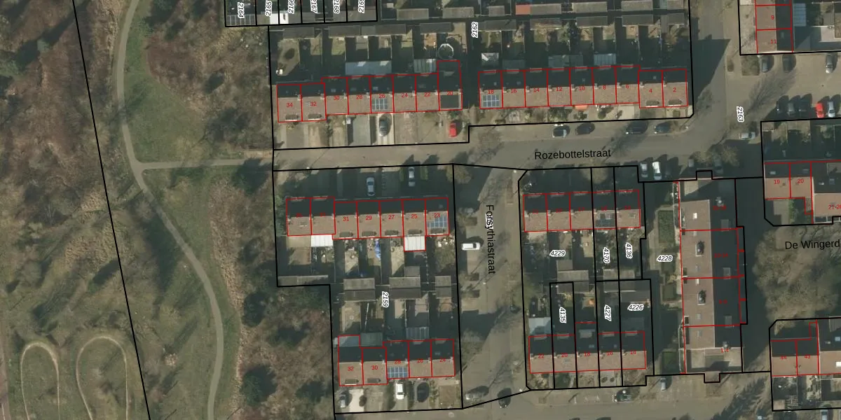 Het perceel waarop Rozebottelstraat 25 staat heeft een oppervlakte van 2119 m². Dit is een zeer groot perceel. De perceeloppervlakte wordt geregistreerd door het Kadaster. Gedetailleerde informatie over de maten van dit perceel kunt u vinden in het rapport Kadastrale kaart met maatvoering van Rozebottelstraat 25.