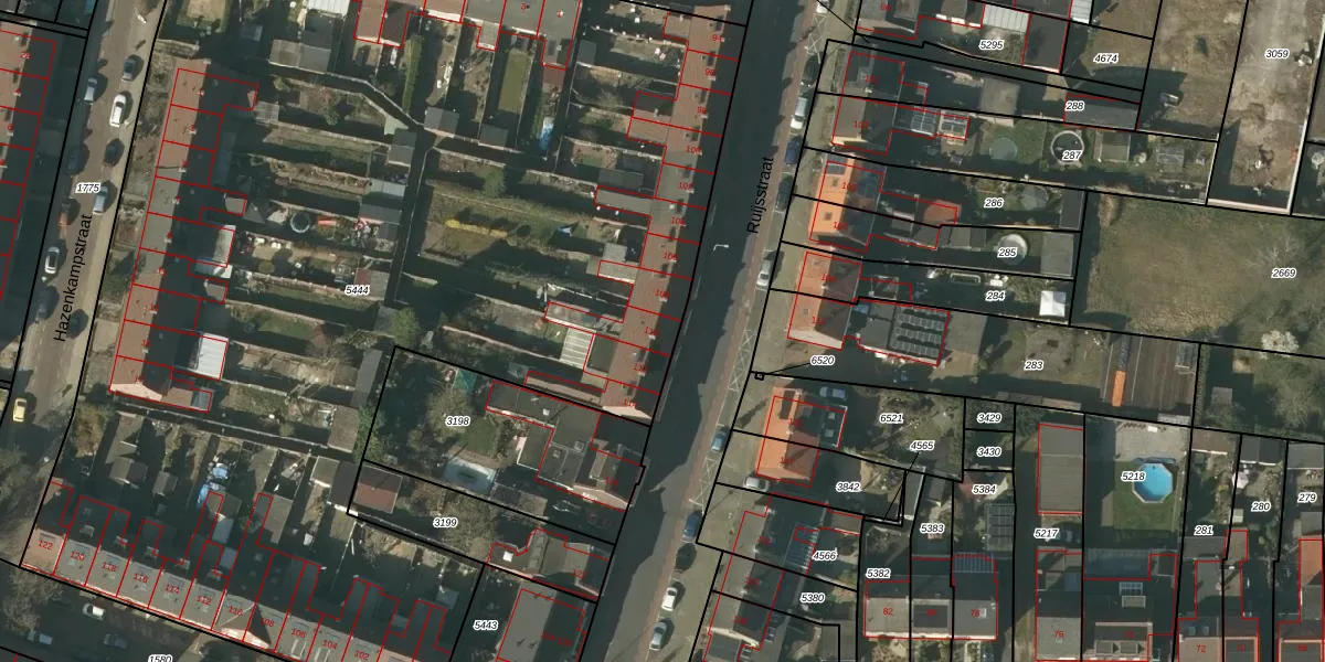 Het perceel waarop Ruijsstraat 110 staat heeft een oppervlakte van 7768 m². Dit is een zeer groot perceel. De perceeloppervlakte wordt geregistreerd door het Kadaster. Gedetailleerde informatie over de maten van dit perceel kunt u vinden in het rapport Kadastrale kaart met maatvoering van Ruijsstraat 110.