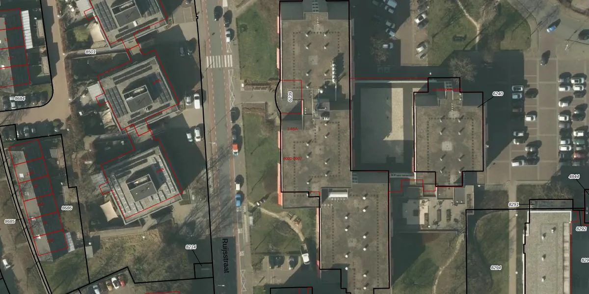 Het perceel waarop Ruijsstraat 55-B staat heeft een oppervlakte van 2393 m². Dit is een zeer groot perceel. De perceeloppervlakte wordt geregistreerd door het Kadaster. Gedetailleerde informatie over de maten van dit perceel kunt u vinden in het rapport Kadastrale kaart met maatvoering van Ruijsstraat 55-B.