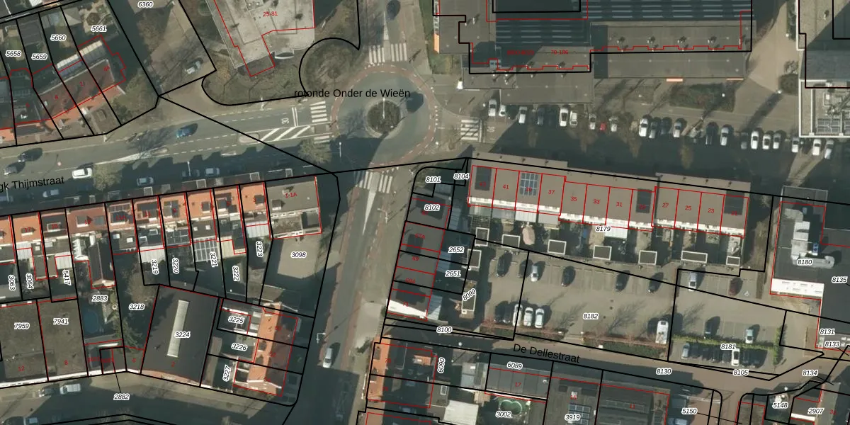 Gebruik de zoekbalk of klik op een perceel voor informatie over de adressen binnen dit perceel.