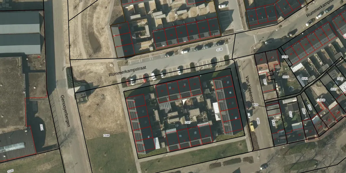 Rummerkampstraat 55 is gelegen op kadastraal perceel VLO00A7597. Deze kadastrale aanduiding is uniek en wordt gebruikt door het Kadaster om eigendomsrechten en andere zakelijke rechten vast te leggen. Het perceel maakt onderdeel uit van de kadastrale gemeente Venlo.