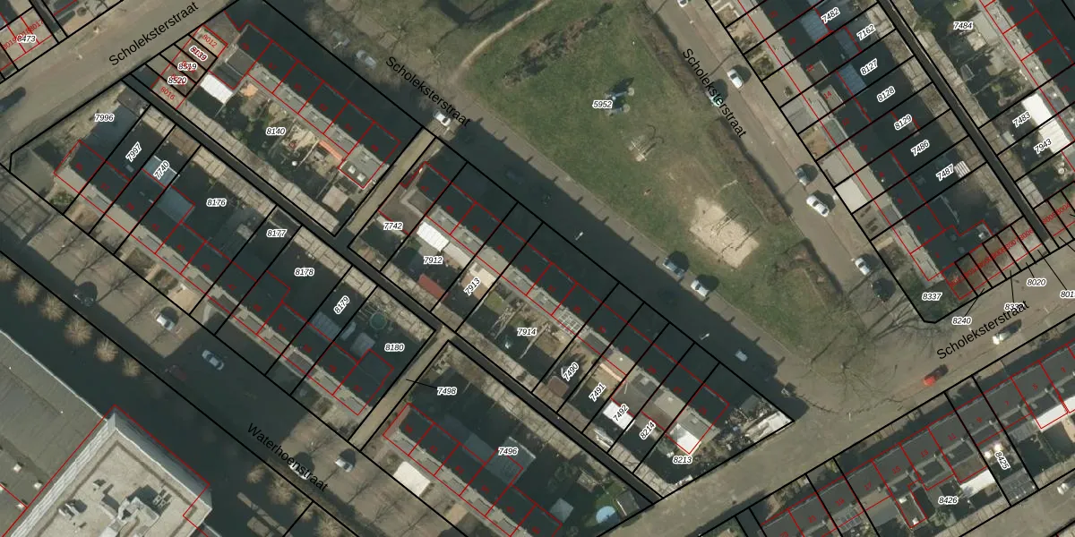 Het perceel waarop Scholeksterstraat 39 staat heeft een oppervlakte van 472 m². Dit is een groot perceel. De perceeloppervlakte wordt geregistreerd door het Kadaster. Gedetailleerde informatie over de maten van dit perceel kunt u vinden in het rapport Kadastrale kaart met maatvoering van Scholeksterstraat 39.