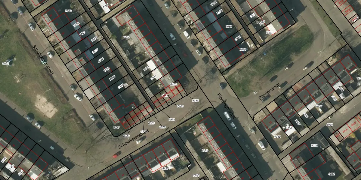 Scholeksterstraat 8000 is gelegen op kadastraal perceel VLO00H8336. Deze kadastrale aanduiding is uniek en wordt gebruikt door het Kadaster om eigendomsrechten en andere zakelijke rechten vast te leggen. Het perceel maakt onderdeel uit van de kadastrale gemeente Venlo.