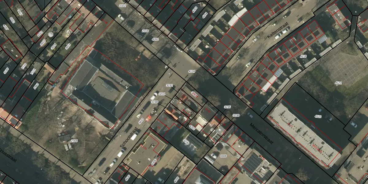 Schoolstraat 1 is gelegen op kadastraal perceel VLO00I3232. Deze kadastrale aanduiding is uniek en wordt gebruikt door het Kadaster om eigendomsrechten en andere zakelijke rechten vast te leggen. Het perceel maakt onderdeel uit van de kadastrale gemeente Venlo.