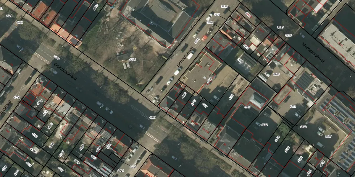 Schoolstraat 19 is gelegen op kadastraal perceel VLO00I4829. Deze kadastrale aanduiding is uniek en wordt gebruikt door het Kadaster om eigendomsrechten en andere zakelijke rechten vast te leggen. Het perceel maakt onderdeel uit van de kadastrale gemeente Venlo.