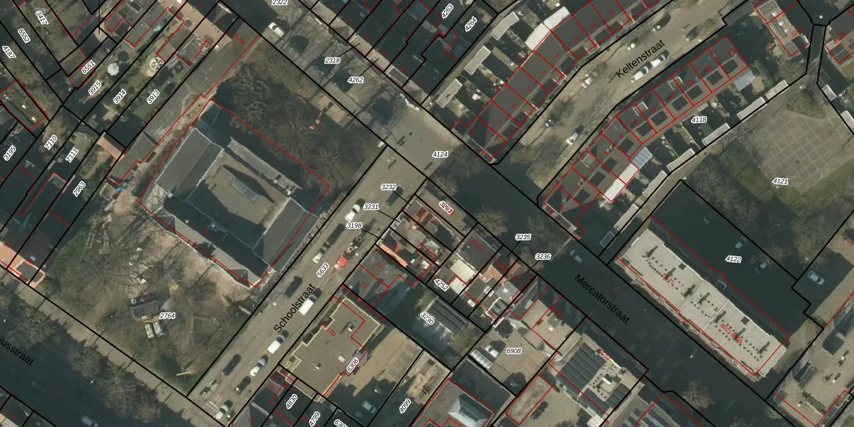 Schoolstraat 5 is gelegen op kadastraal perceel VLO00I3232. Deze kadastrale aanduiding is uniek en wordt gebruikt door het Kadaster om eigendomsrechten en andere zakelijke rechten vast te leggen. Het perceel maakt onderdeel uit van de kadastrale gemeente Venlo.