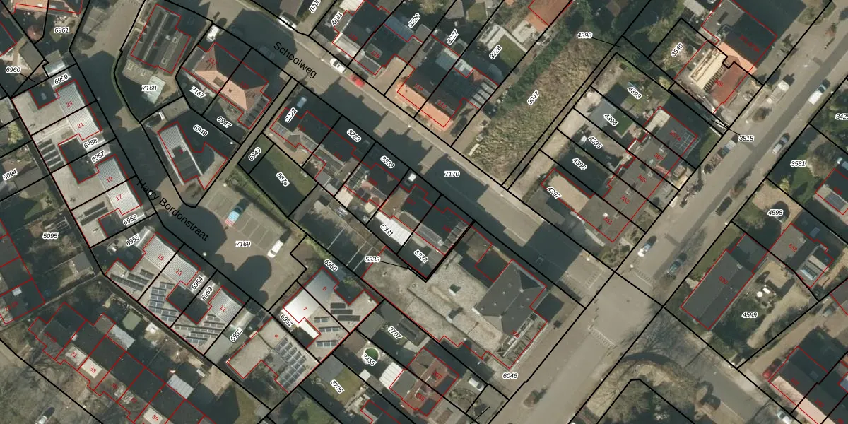 Schoolweg 107 is gelegen op kadastraal perceel VLO00A5331. Deze kadastrale aanduiding is uniek en wordt gebruikt door het Kadaster om eigendomsrechten en andere zakelijke rechten vast te leggen. Het perceel maakt onderdeel uit van de kadastrale gemeente Venlo.