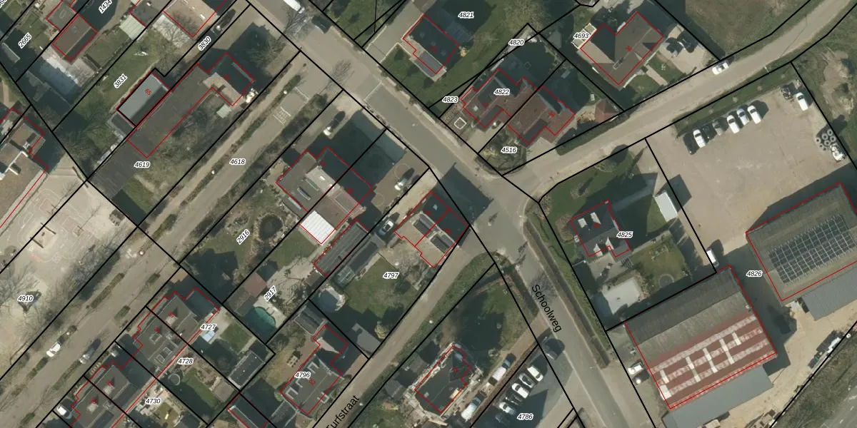 Het perceel waarop Schoolweg 43 staat heeft een oppervlakte van 725 m². Dit is een groot perceel. De perceeloppervlakte wordt geregistreerd door het Kadaster. Gedetailleerde informatie over de maten van dit perceel kunt u vinden in het rapport Kadastrale kaart met maatvoering van Schoolweg 43.