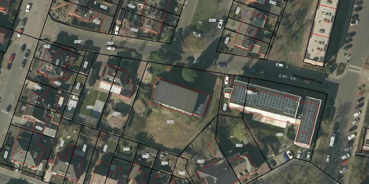 Schubertstraat 12 is gelegen op kadastraal perceel VLO00A7300. Deze kadastrale aanduiding is uniek en wordt gebruikt door het Kadaster om eigendomsrechten en andere zakelijke rechten vast te leggen. Het perceel maakt onderdeel uit van de kadastrale gemeente Venlo.