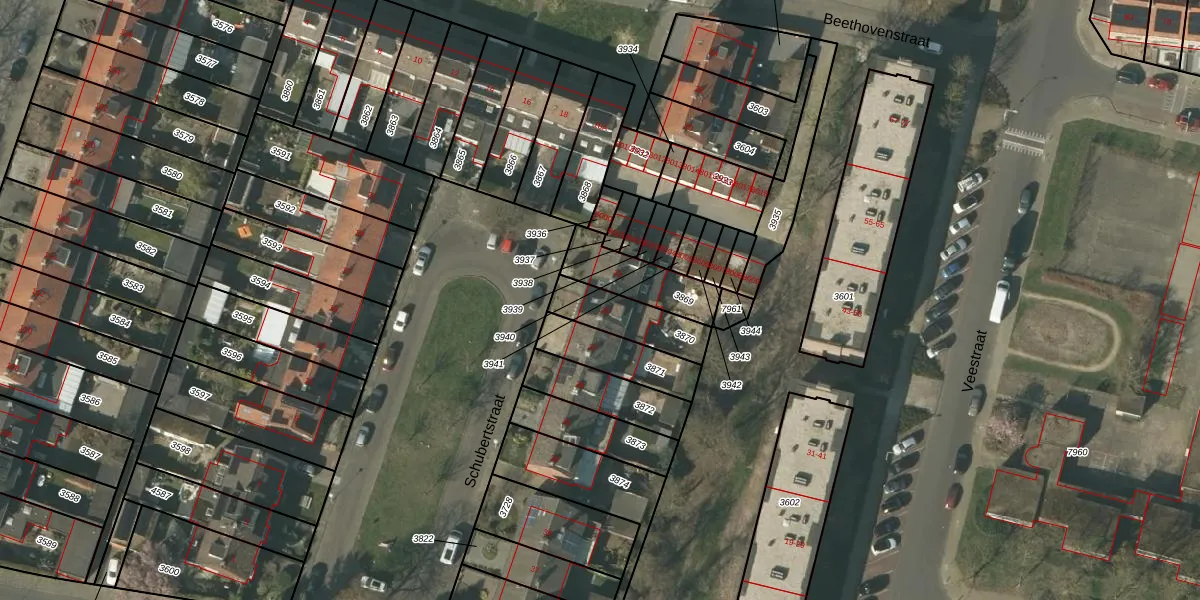 Schubertstraat 25 is gelegen op kadastraal perceel VLO00A3870. Deze kadastrale aanduiding is uniek en wordt gebruikt door het Kadaster om eigendomsrechten en andere zakelijke rechten vast te leggen. Het perceel maakt onderdeel uit van de kadastrale gemeente Venlo.