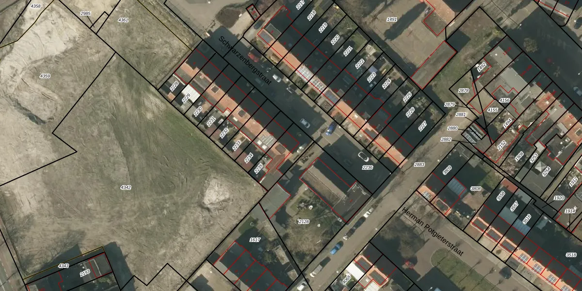 Schwarzenbergstraat 18 is gelegen op kadastraal perceel VLO00F2235. Deze kadastrale aanduiding is uniek en wordt gebruikt door het Kadaster om eigendomsrechten en andere zakelijke rechten vast te leggen. Het perceel maakt onderdeel uit van de kadastrale gemeente Venlo.
