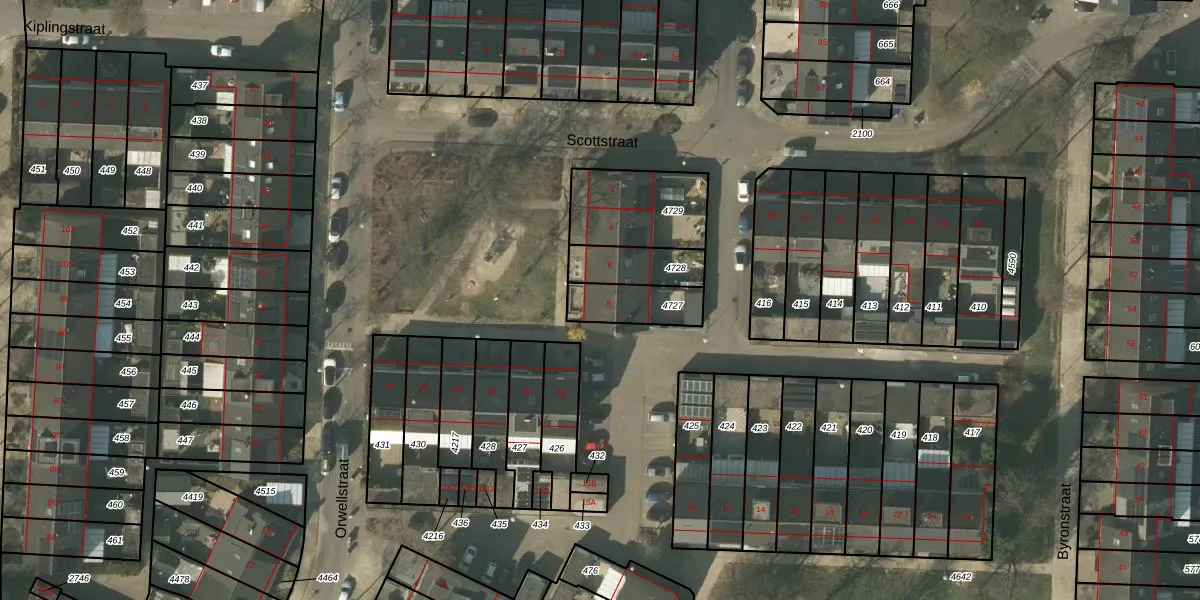 Gebruik de zoekbalk of klik op een perceel voor informatie over de adressen binnen dit perceel.