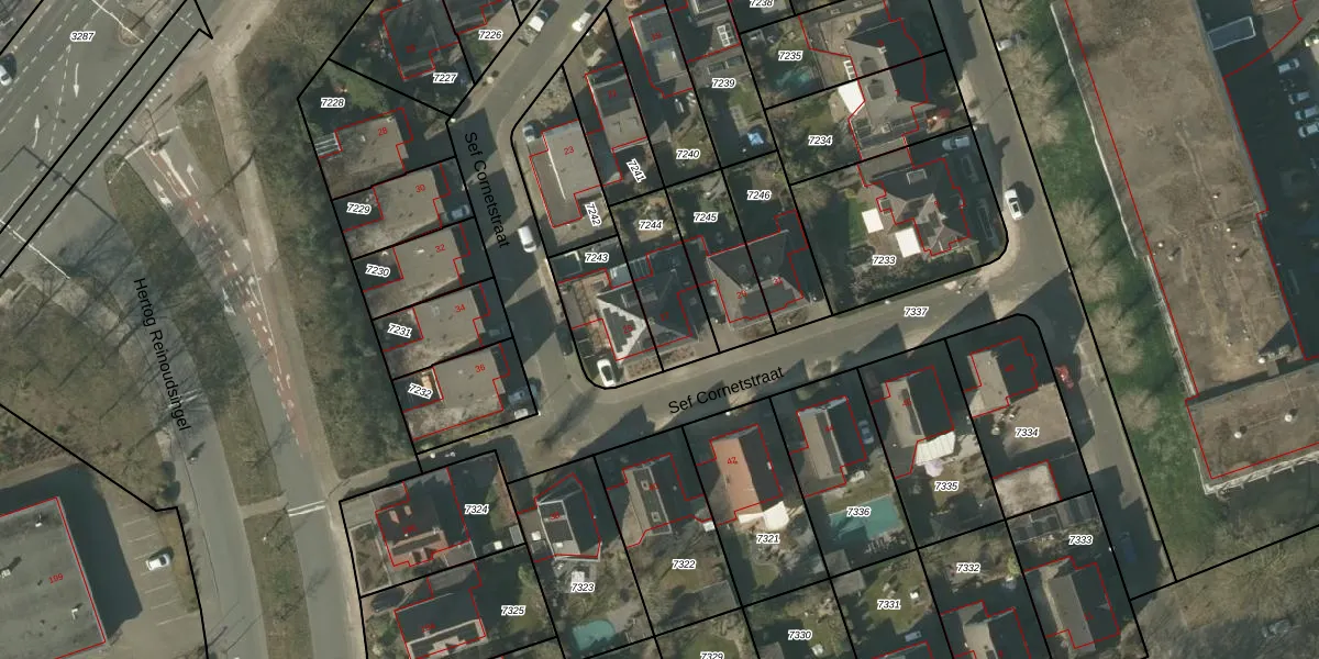 Gebruik de zoekbalk of klik op een perceel voor informatie over de adressen binnen dit perceel.