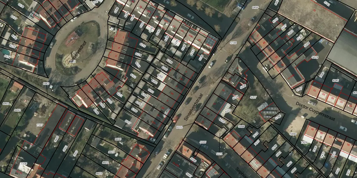 Sinselveldstraat 6 is gelegen op kadastraal perceel VLO00H6201. Deze kadastrale aanduiding is uniek en wordt gebruikt door het Kadaster om eigendomsrechten en andere zakelijke rechten vast te leggen. Het perceel maakt onderdeel uit van de kadastrale gemeente Venlo.