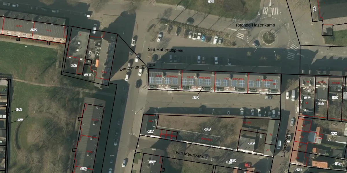 Sint Hubertusplein 8010 is gelegen op kadastraal perceel VLO00M5752. Deze kadastrale aanduiding is uniek en wordt gebruikt door het Kadaster om eigendomsrechten en andere zakelijke rechten vast te leggen. Het perceel maakt onderdeel uit van de kadastrale gemeente Venlo.