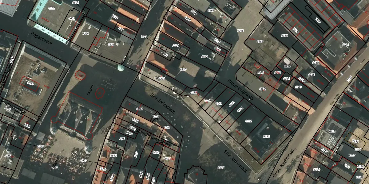 Het perceel waarop Sint Jorisstraat 5 staat heeft een oppervlakte van 90 m². Dit is een klein perceel. De perceeloppervlakte wordt geregistreerd door het Kadaster. Gedetailleerde informatie over de maten van dit perceel kunt u vinden in het rapport Kadastrale kaart met maatvoering van Sint Jorisstraat 5.
