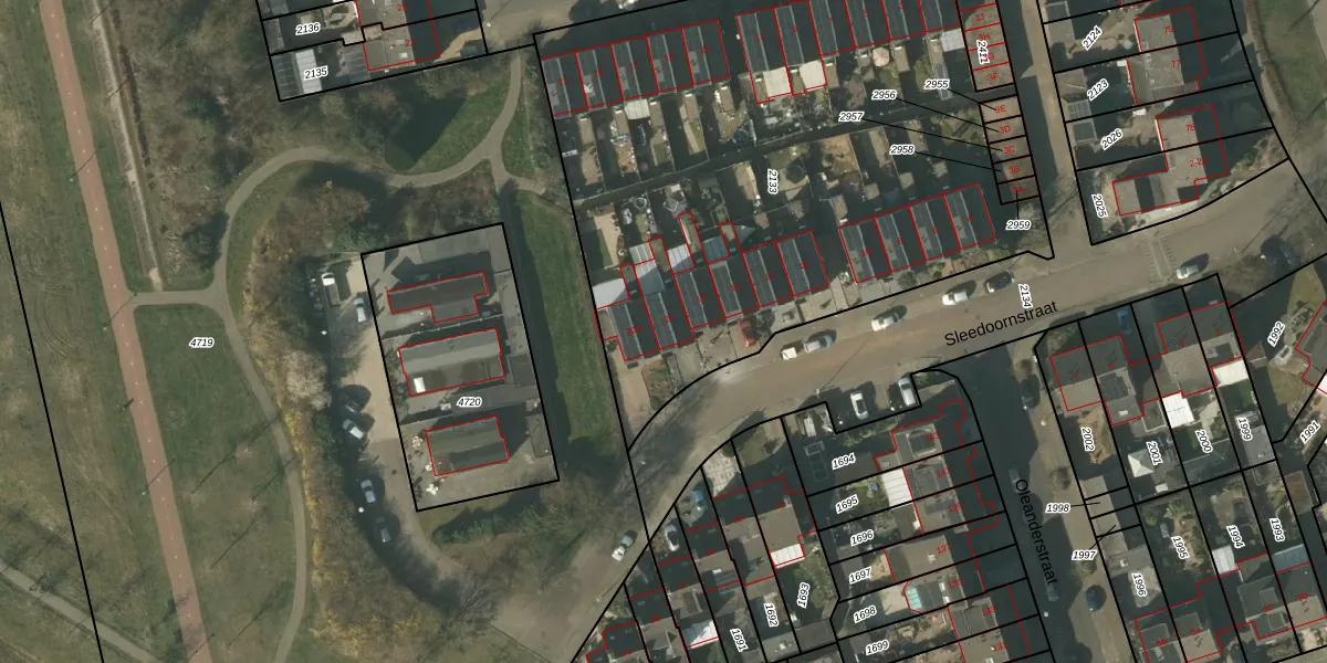 Sleedoornstraat 20 is gelegen op kadastraal perceel VLO00N2133. Deze kadastrale aanduiding is uniek en wordt gebruikt door het Kadaster om eigendomsrechten en andere zakelijke rechten vast te leggen. Het perceel maakt onderdeel uit van de kadastrale gemeente Venlo.