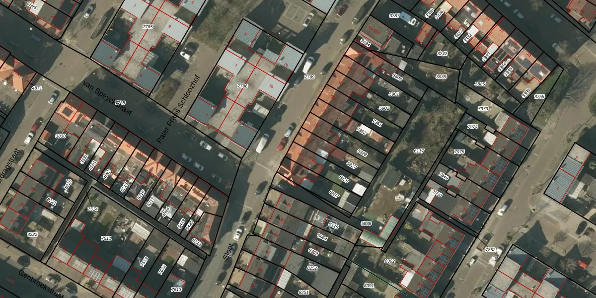 Gebruik de zoekbalk of klik op een perceel voor informatie over de adressen binnen dit perceel.