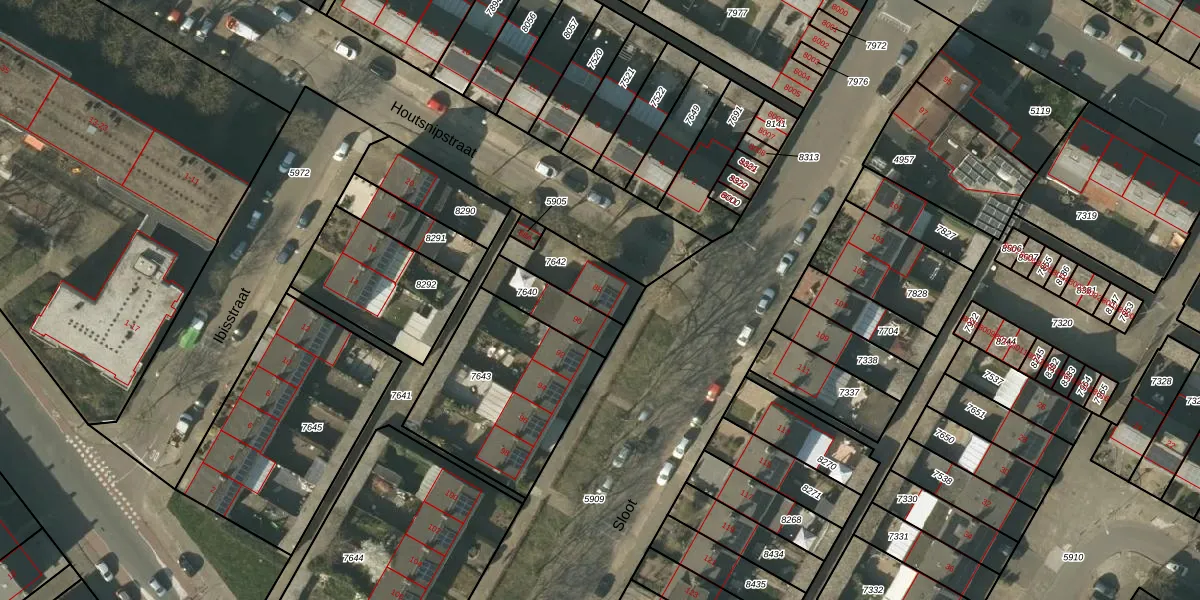 Gebruik de zoekbalk of klik op een perceel voor informatie over de adressen binnen dit perceel.