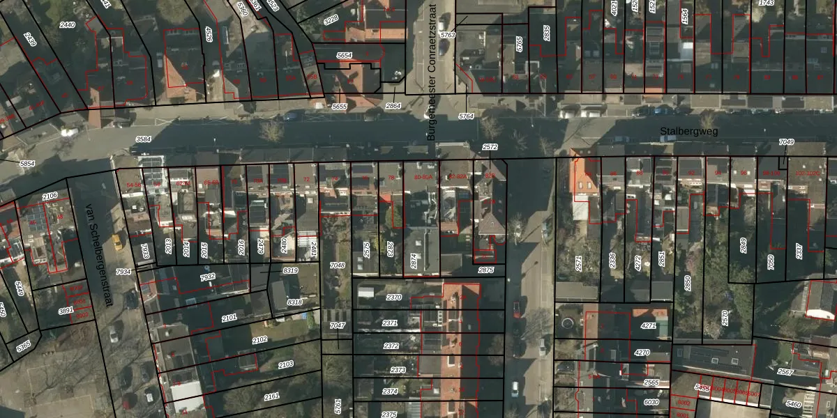 Stalbergweg 80-C is gelegen op kadastraal perceel VLO00D2874. Deze kadastrale aanduiding is uniek en wordt gebruikt door het Kadaster om eigendomsrechten en andere zakelijke rechten vast te leggen. Het perceel maakt onderdeel uit van de kadastrale gemeente Venlo.