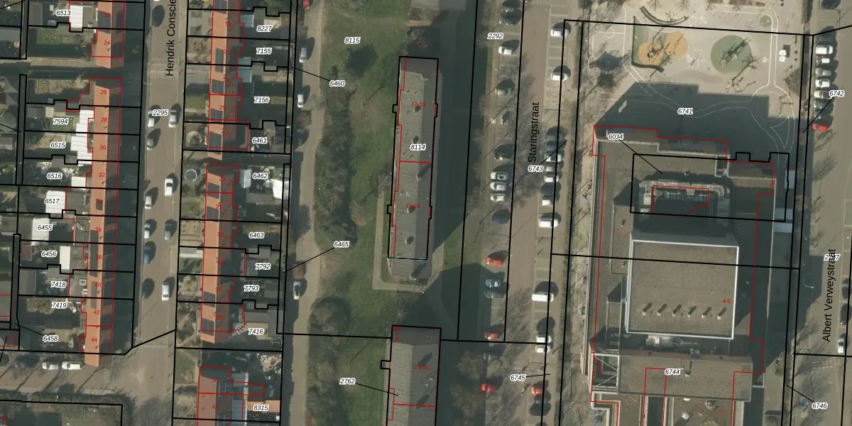 Het perceel waarop Staringstraat 24 staat heeft een oppervlakte van 438 m². Dit is een groot perceel. De perceeloppervlakte wordt geregistreerd door het Kadaster. Gedetailleerde informatie over de maten van dit perceel kunt u vinden in het rapport Kadastrale kaart met maatvoering van Staringstraat 24.