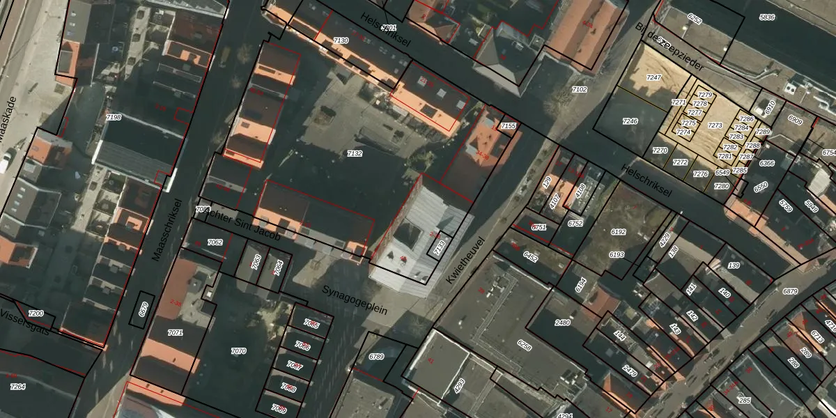 Het perceel waarop Synagogeplein 26 staat heeft een oppervlakte van 2685 m². Dit is een zeer groot perceel. De perceeloppervlakte wordt geregistreerd door het Kadaster. Gedetailleerde informatie over de maten van dit perceel kunt u vinden in het rapport Kadastrale kaart met maatvoering van Synagogeplein 26.